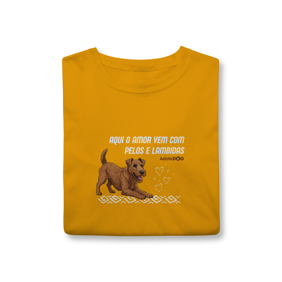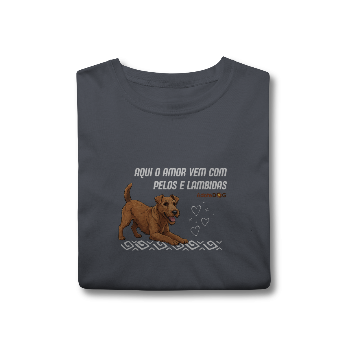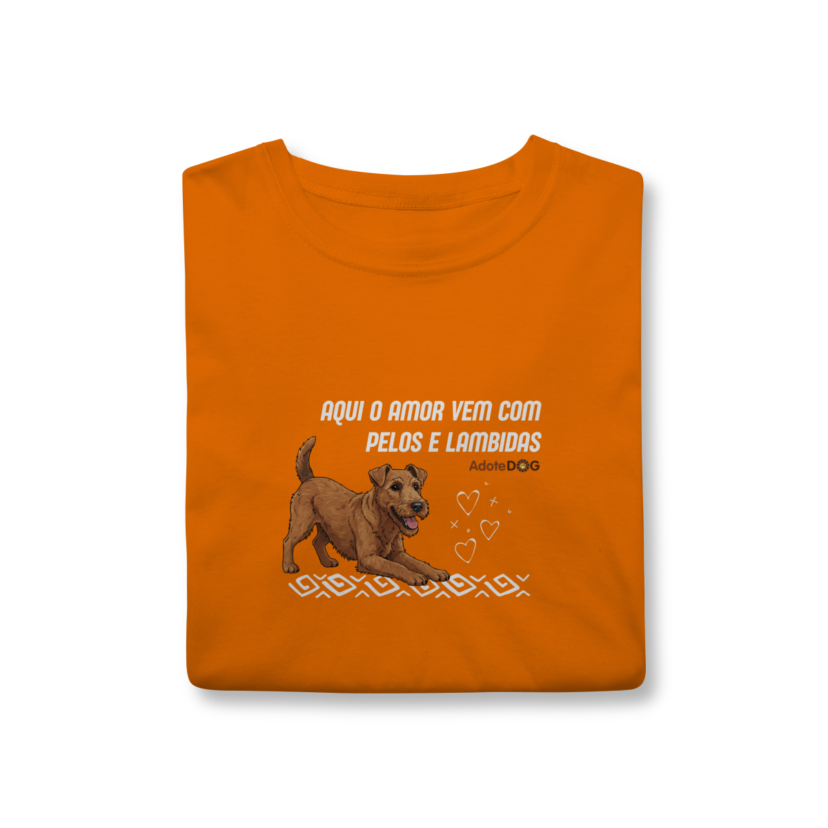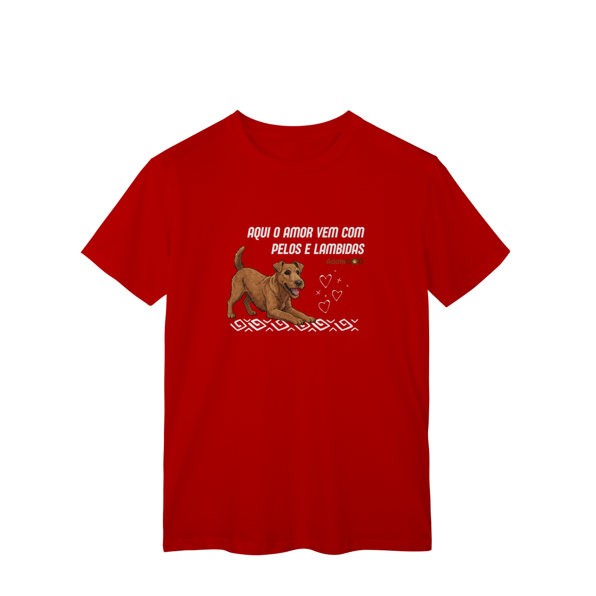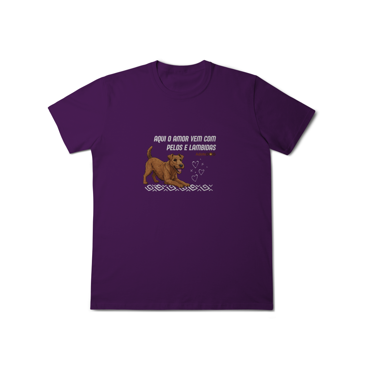Uma camiseta feita para quem vive cercado de afeto verdadeiro, daquele que não pede nada em troca além de carinho. A frase “Aqui o amor vem com pelos e lambidas” traduz, com doçura e humor, a rotina de quem tem um cachorro como parte da família.
