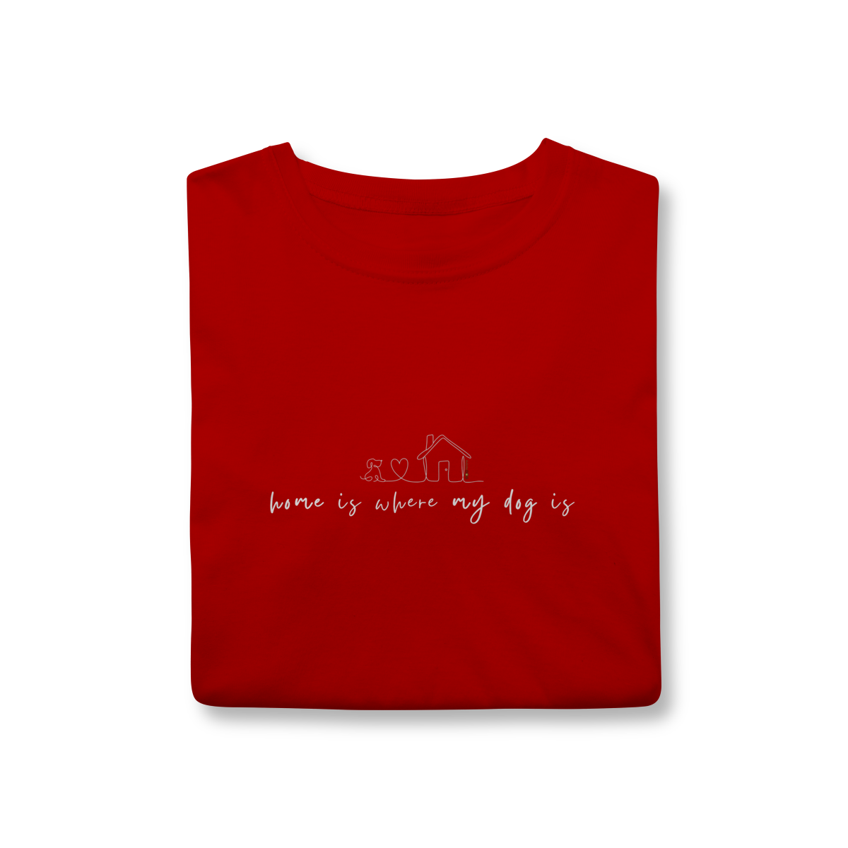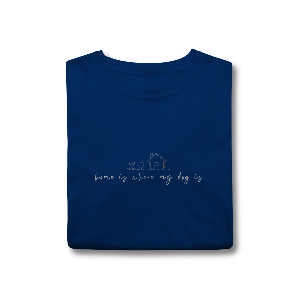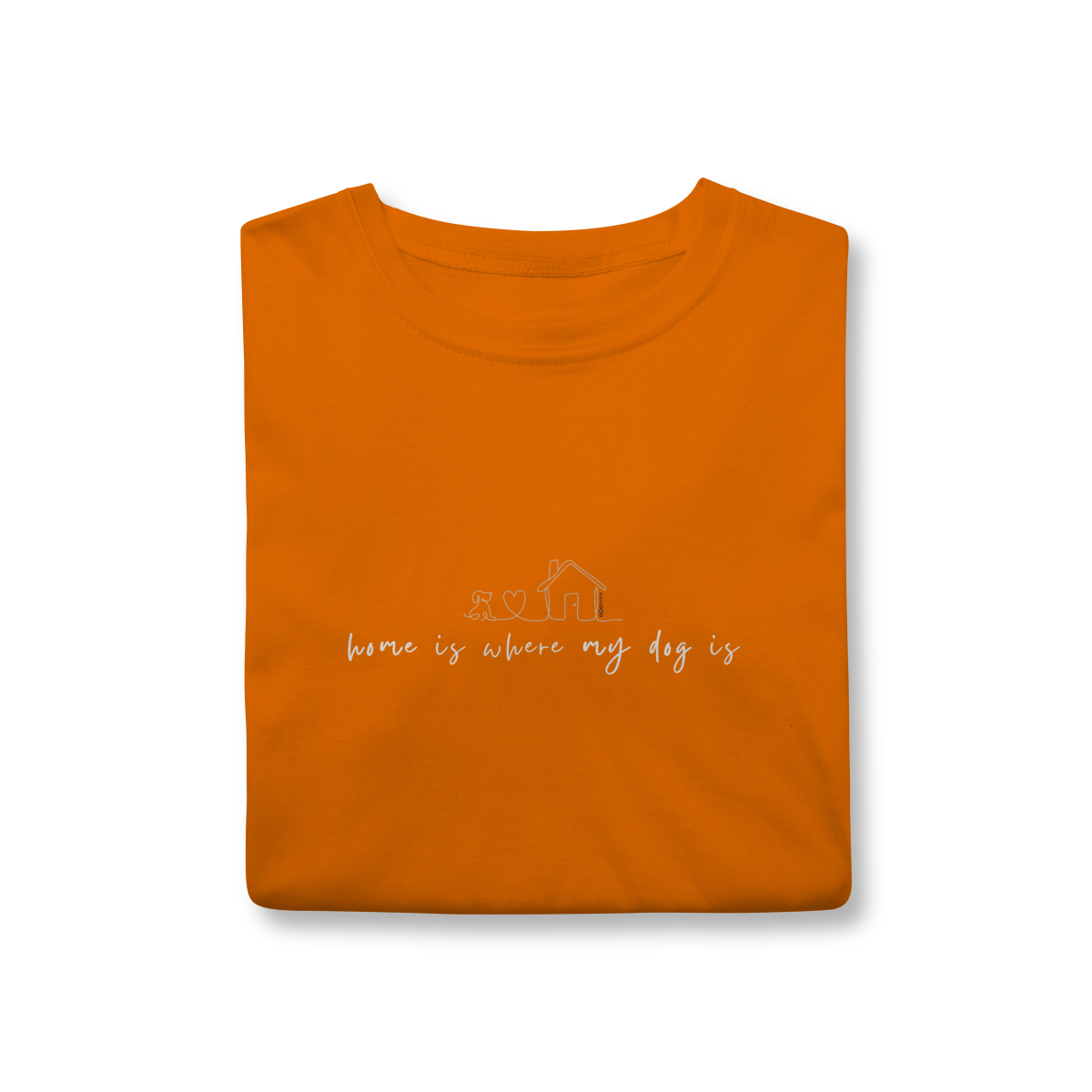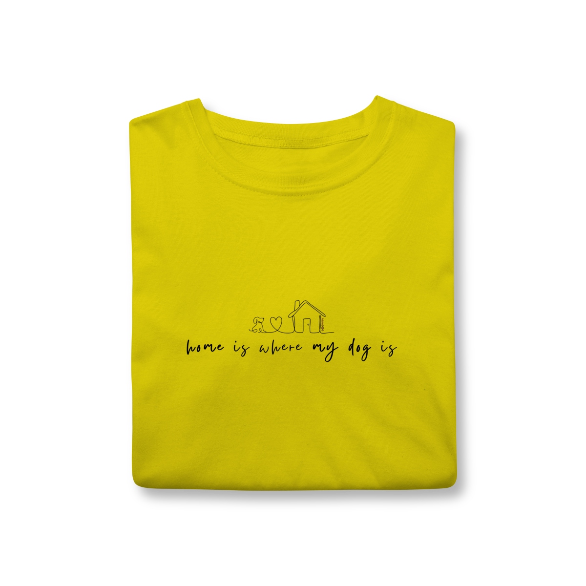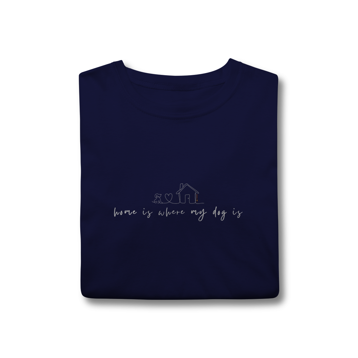 Lar não é um lugar, é quem te espera com o rabinho abanando. A T-shirt clássica com a frase “home is where my dog is” traduz esse sentimento simples e profundo de pertencimento, afeto e aconchego.