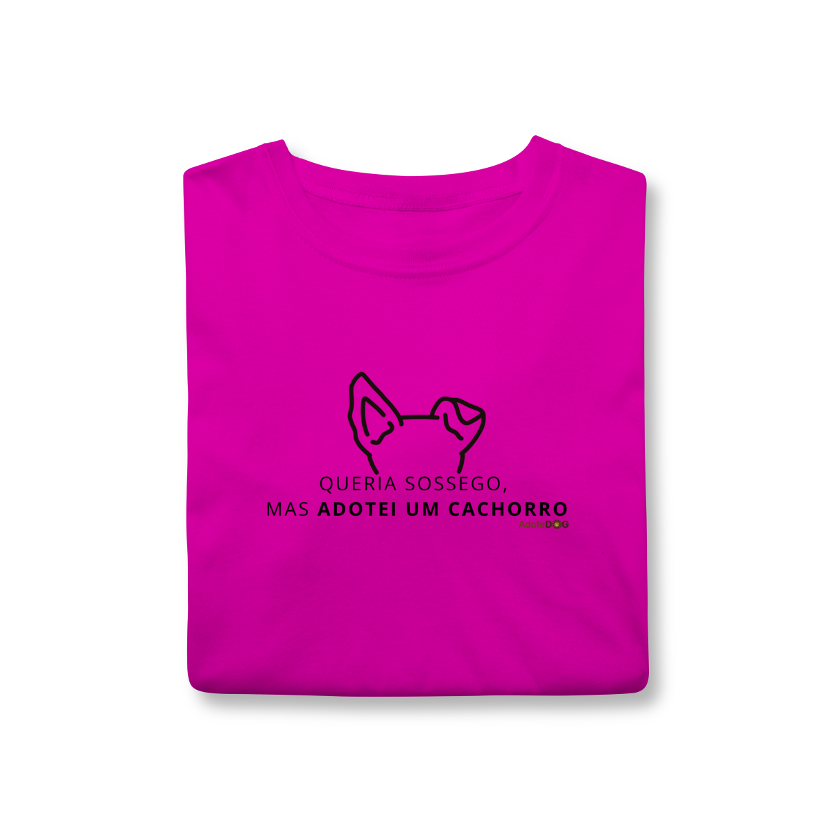 Uma camiseta que conta uma história inteira em uma frase só. “Queria sossego, mas adotei um cachorro” traduz, com bom humor e sinceridade, a escolha consciente por uma vida mais barulhenta, bagunçada e infinitamente mais feliz.