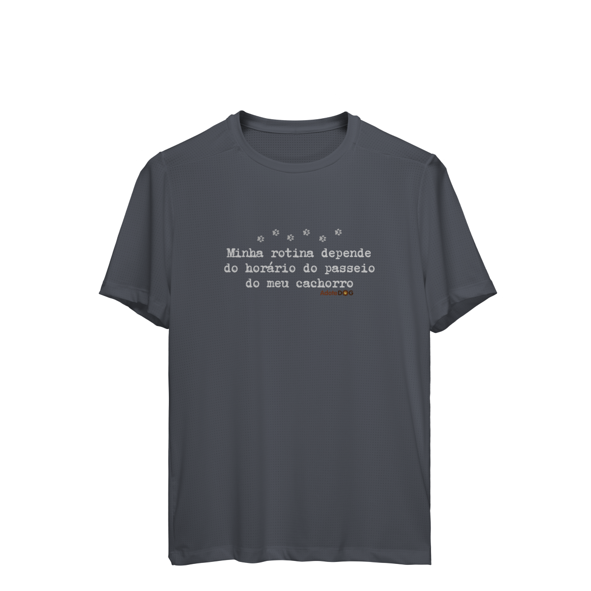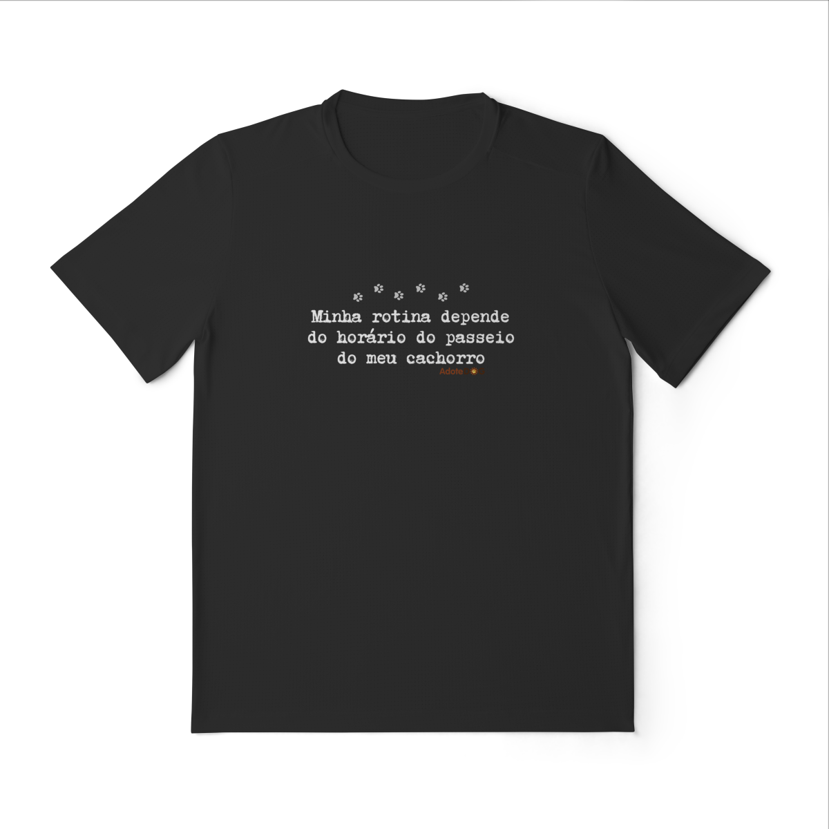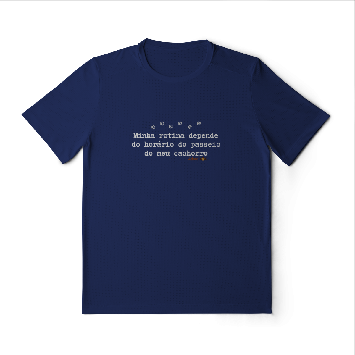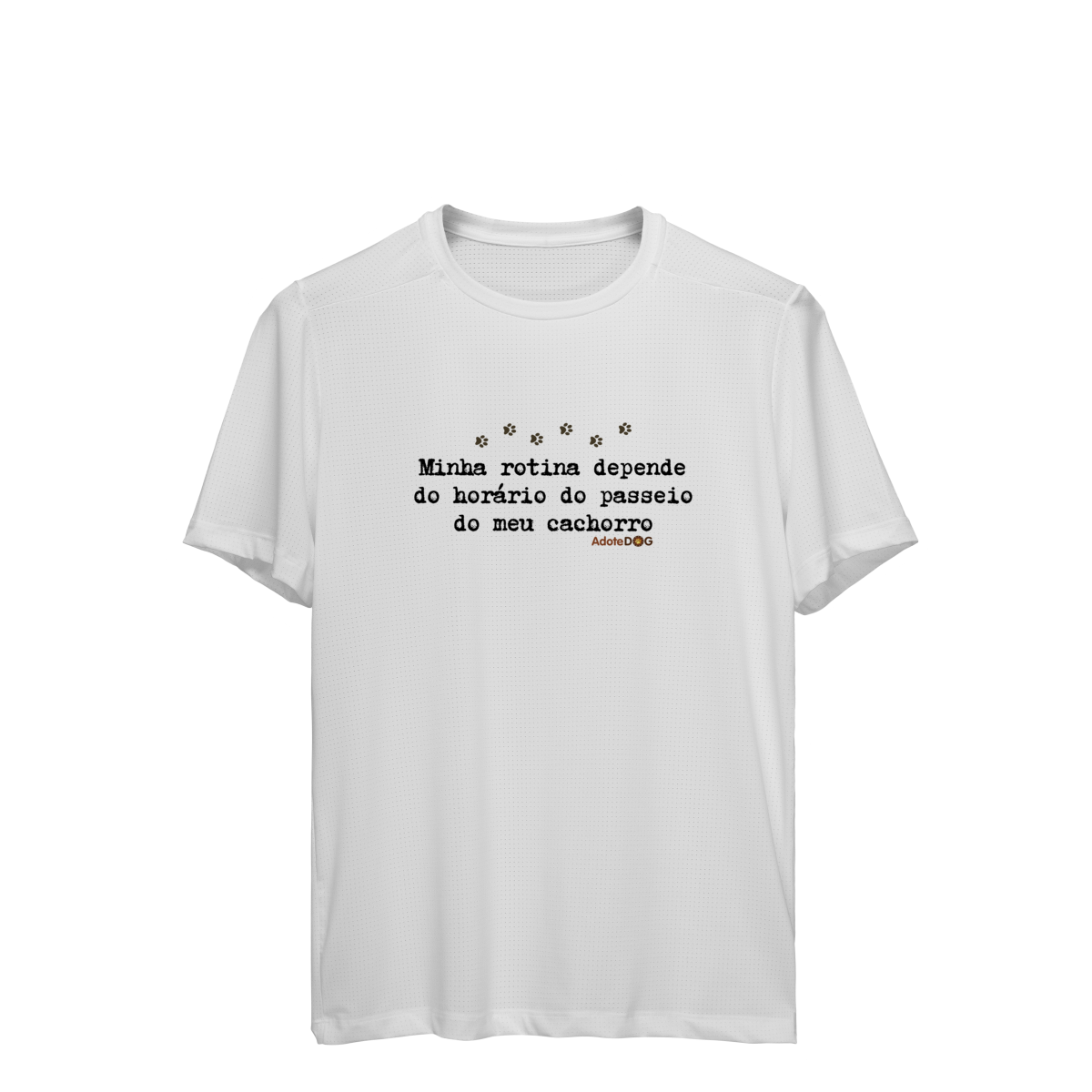 Pensada para quem vive ao ar livre acompanhando passos apressados e rabinhos animados, a Camiseta UV com a frase “Minha rotina depende do horário do passeio.” une conforto, proteção e muito bom humor.