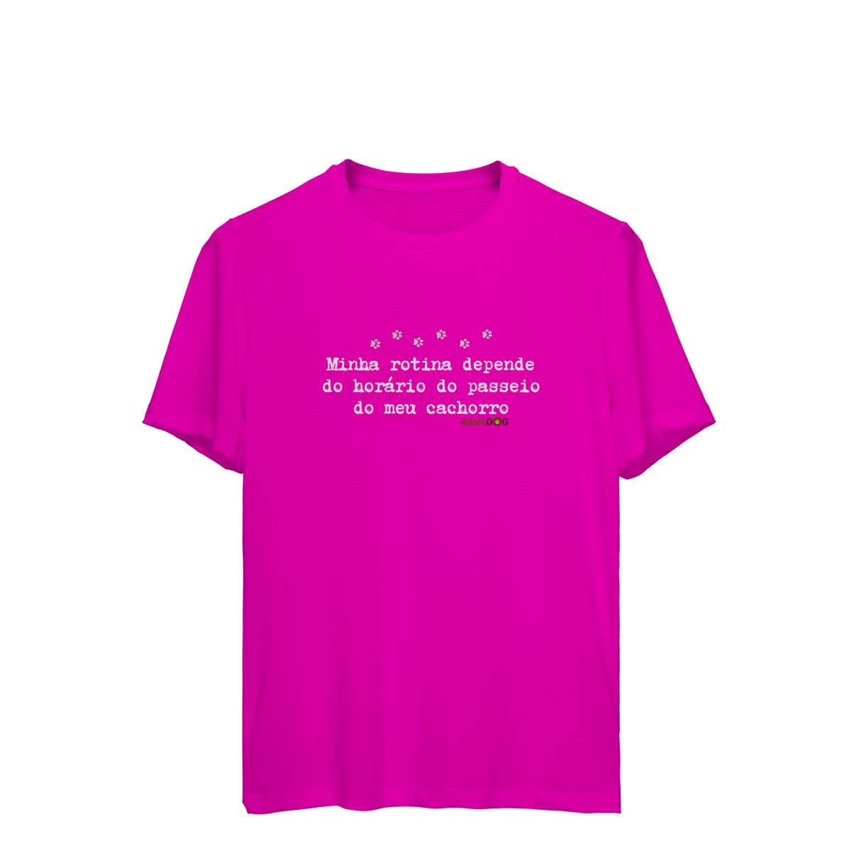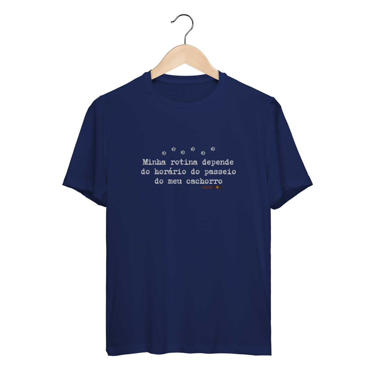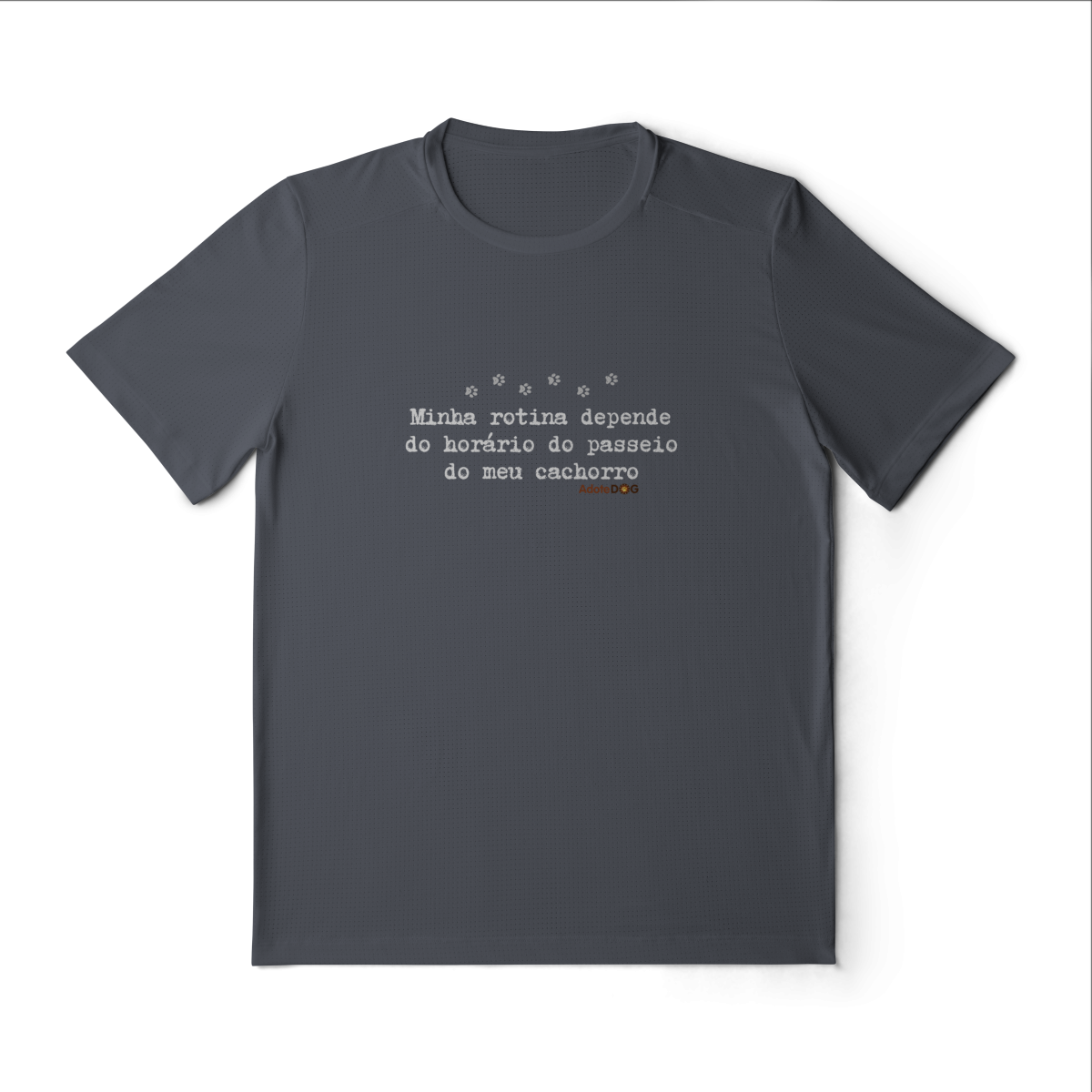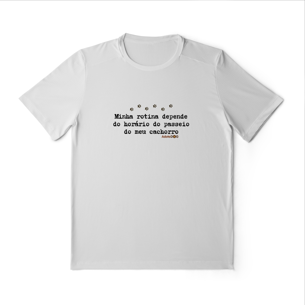 Pensada para quem vive ao ar livre acompanhando passos apressados e rabinhos animados, a Camiseta UV com a frase “Minha rotina depende do horário do passeio.” une conforto, proteção e muito bom humor.