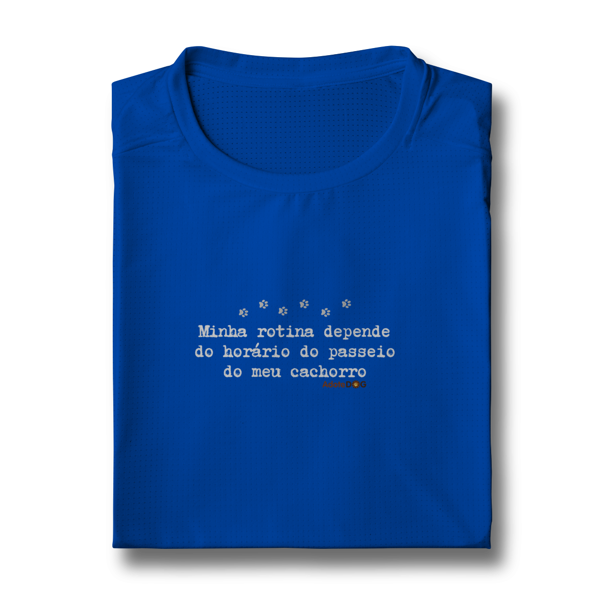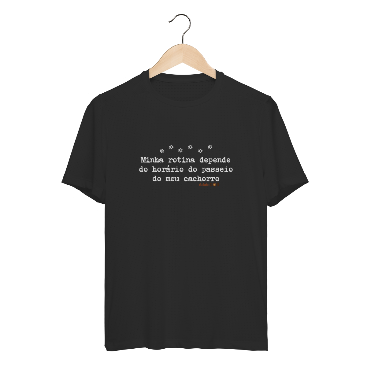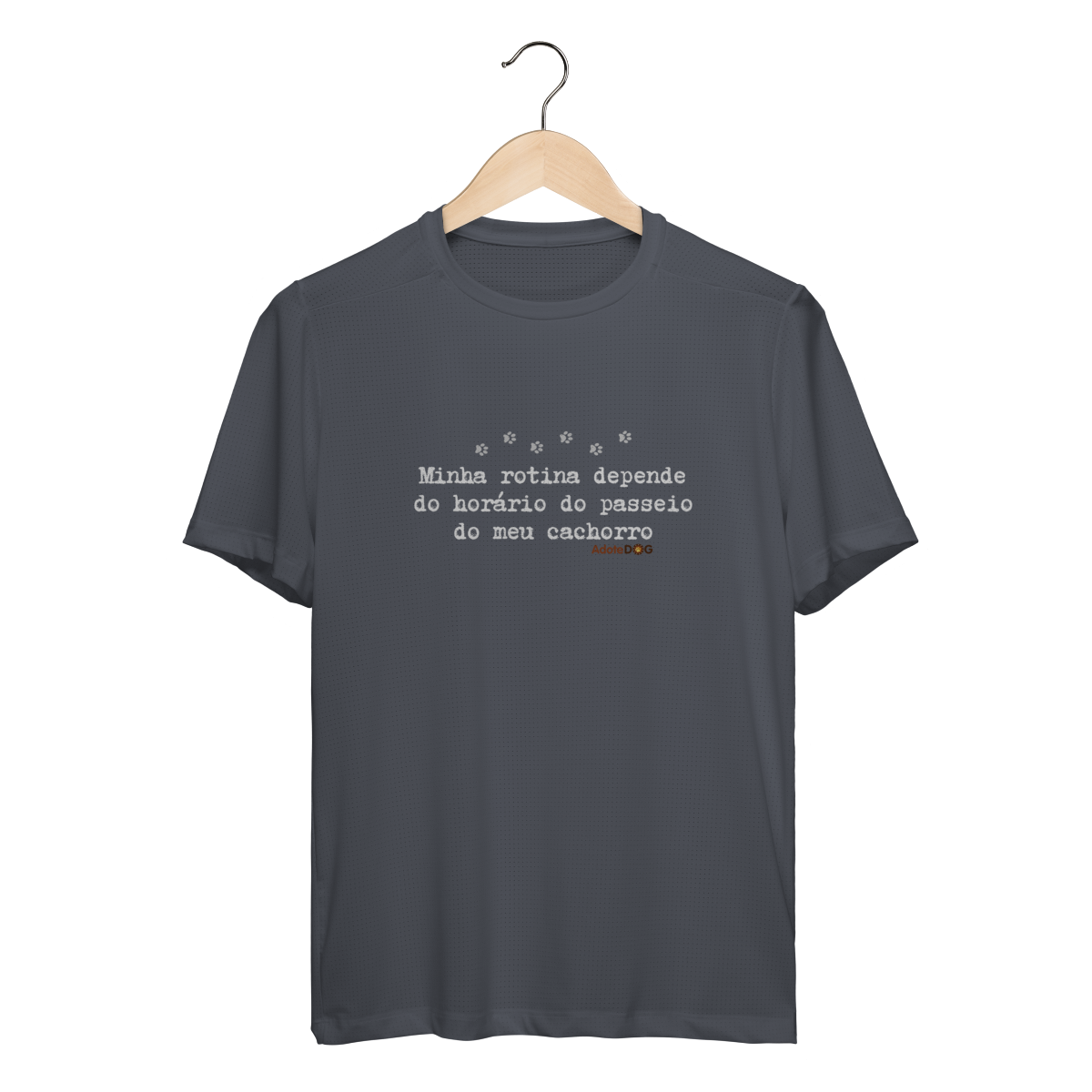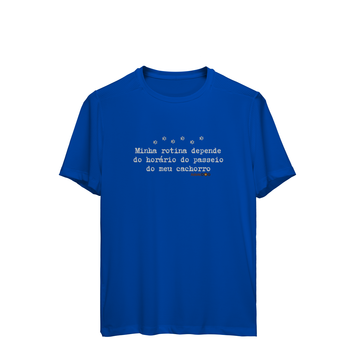 Pensada para quem vive ao ar livre acompanhando passos apressados e rabinhos animados, a Camiseta UV com a frase “Minha rotina depende do horário do passeio.” une conforto, proteção e muito bom humor.