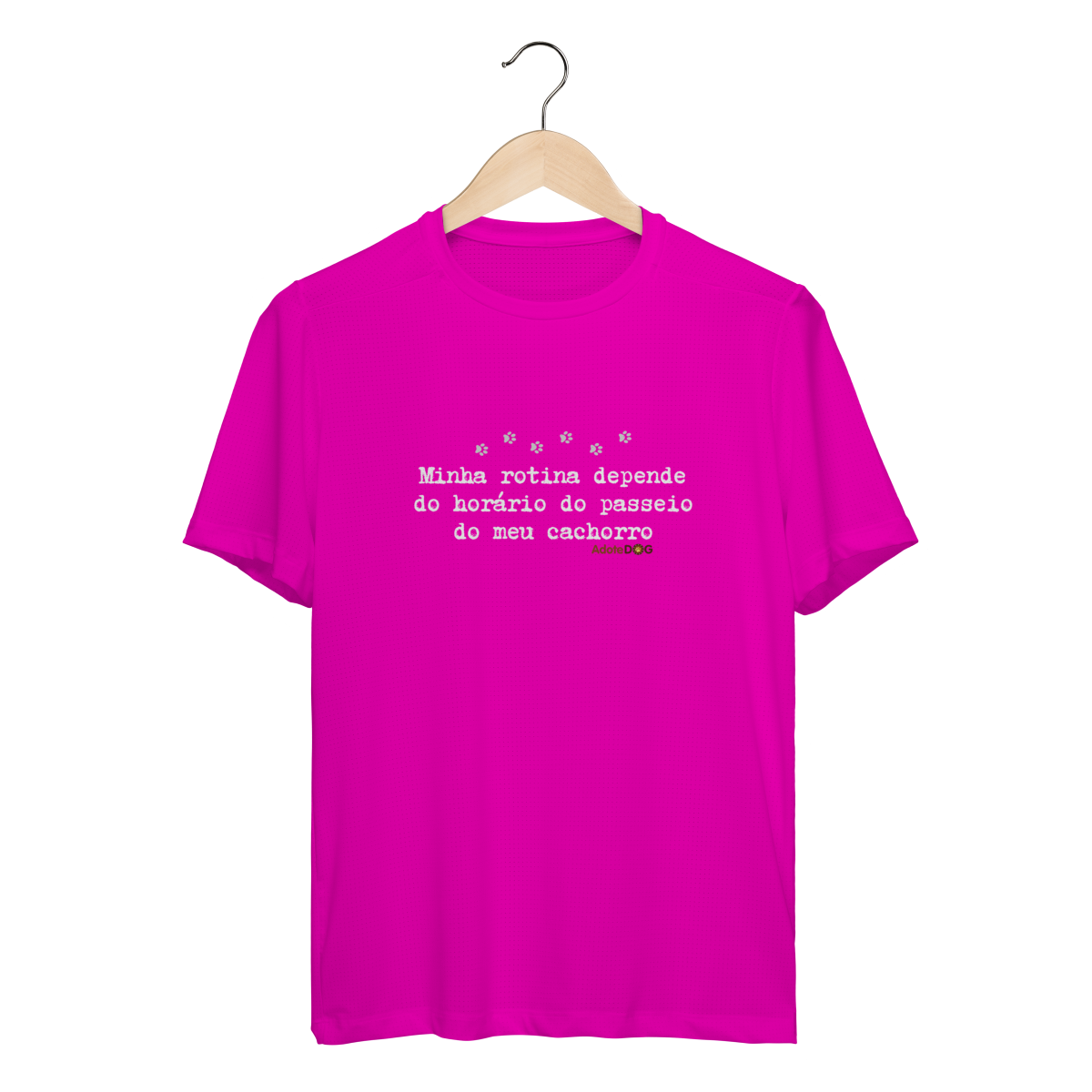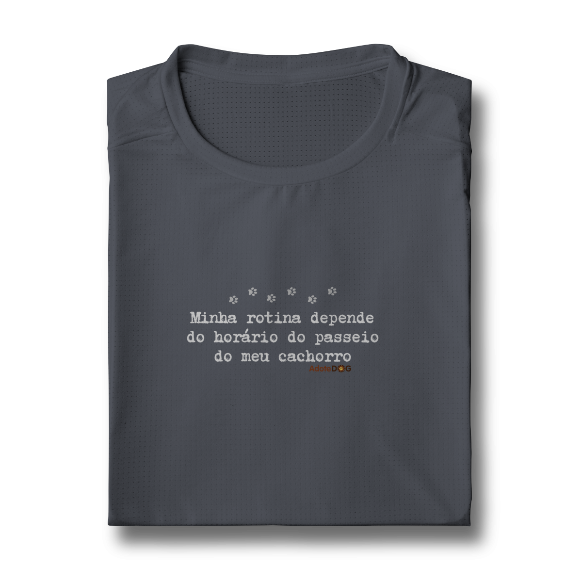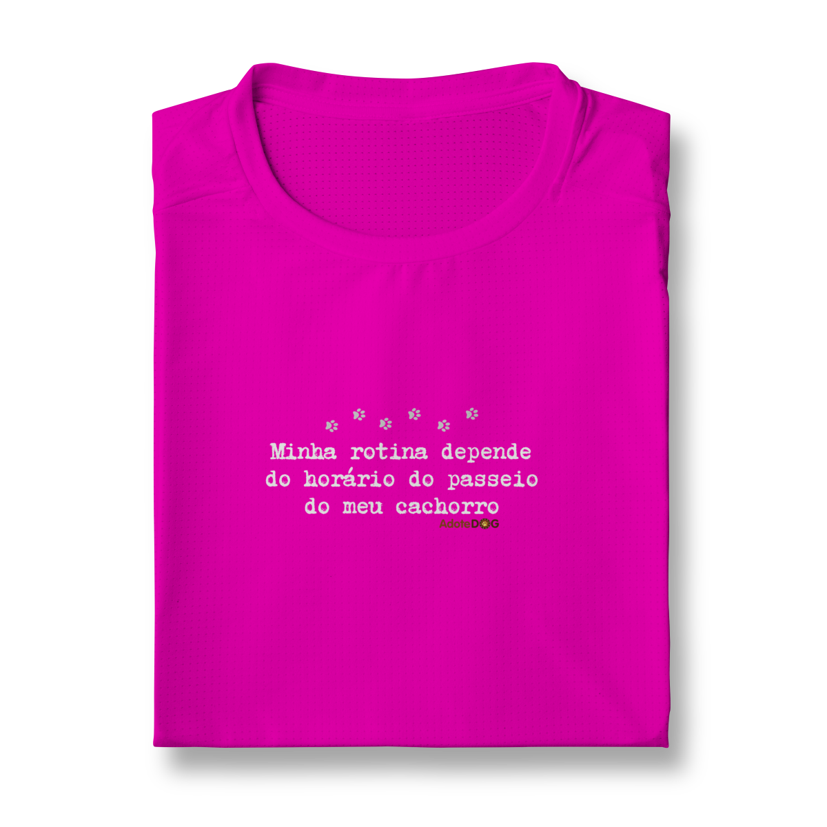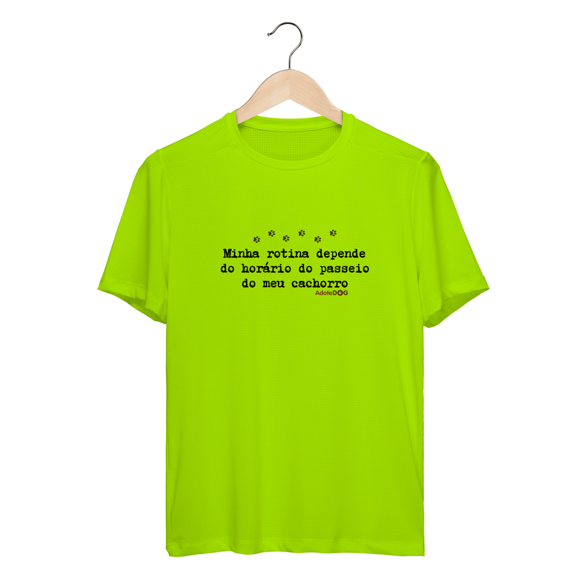 Pensada para quem vive ao ar livre acompanhando passos apressados e rabinhos animados, a Camiseta UV com a frase “Minha rotina depende do horário do passeio.” une conforto, proteção e muito bom humor.