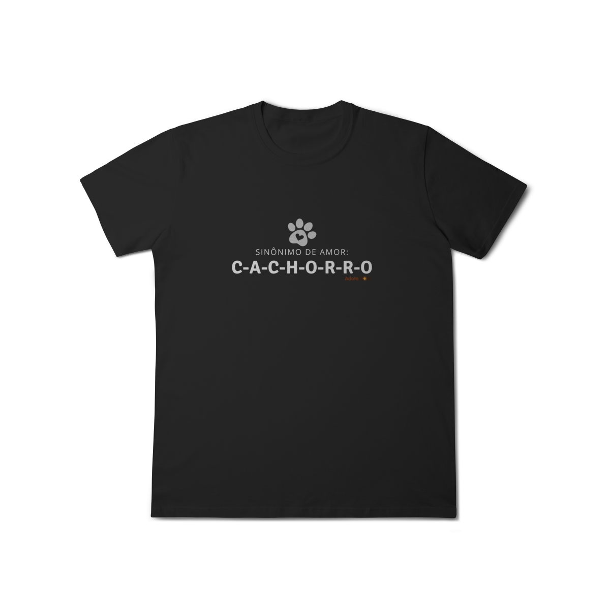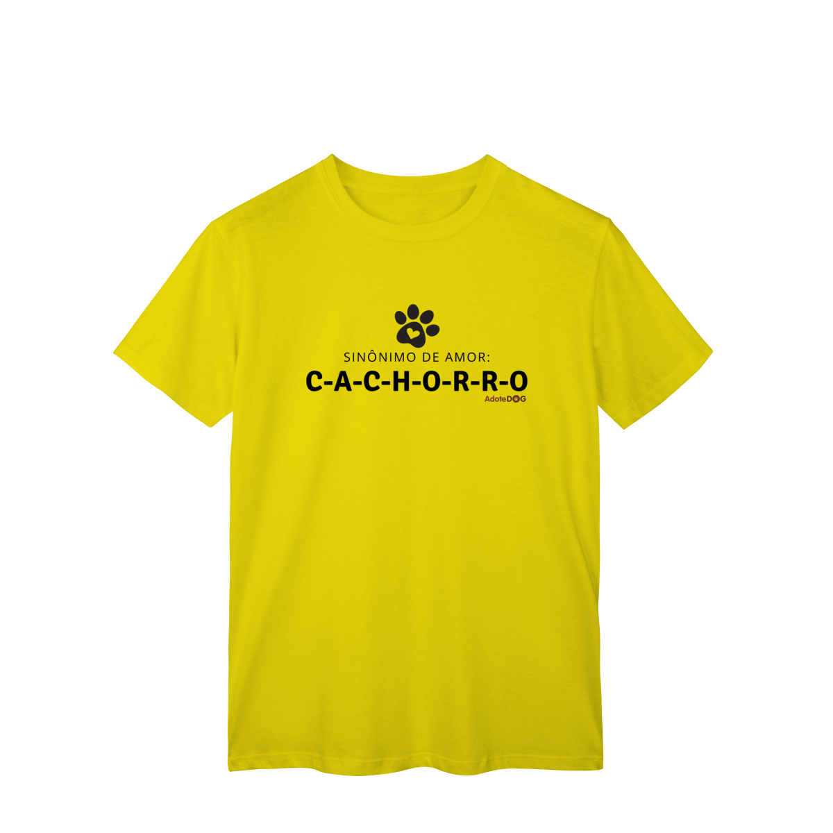 Uma camiseta que define amor do jeito mais simples e verdadeiro. A frase “sinônimo de amor: c-a-c-h-o-r-r-o” traduz aquele sentimento puro, leal e diário que só quem convive com um cachorro conhece de verdade.