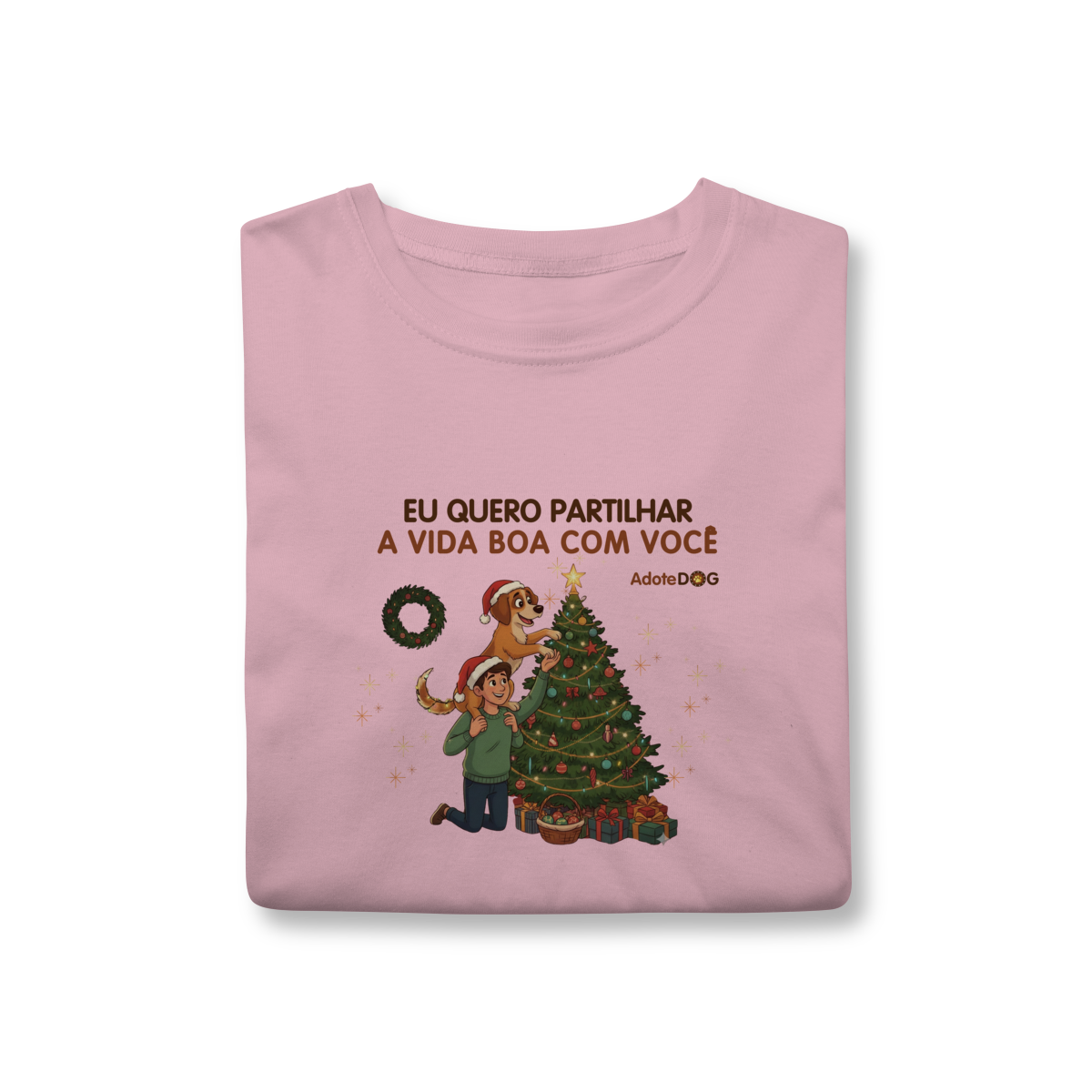 A T-shirt classic vem com caimento leve e versátil — combina com tudo e transmite uma mensagem que combina com o coração: dividir a vida boa com quem faz tudo valer a pena… inclusive o doguinho que te escolheu.