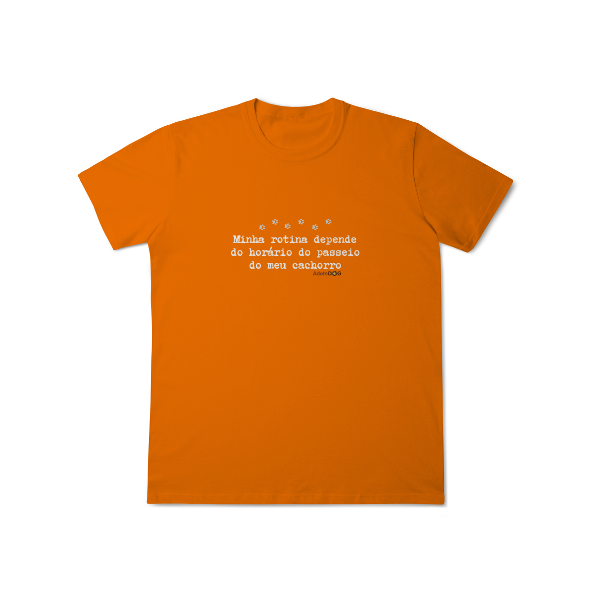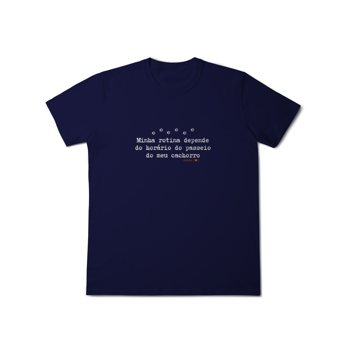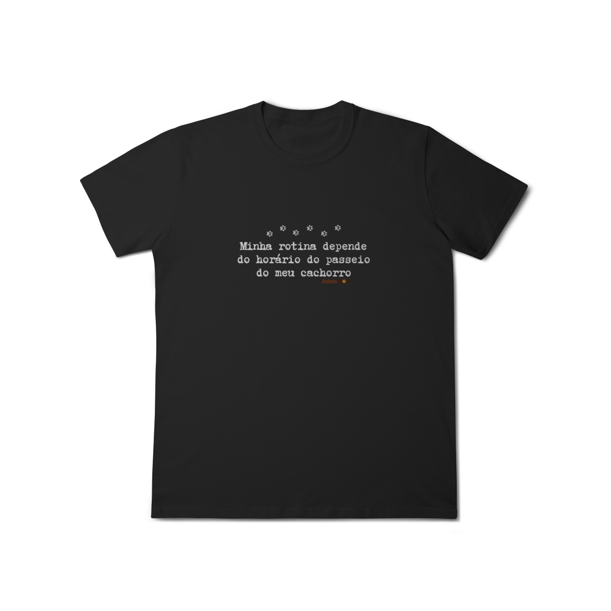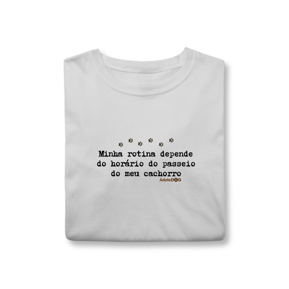 Uma camiseta feita para quem organiza o dia em função de patinhas animadas e passeios obrigatórios. A T-shirt clássica com a frase “Minha rotina depende do horário do passeio.” traz conforto, estilo e uma boa dose de identificação para quem vive a rotina real de quem tem cachorro.