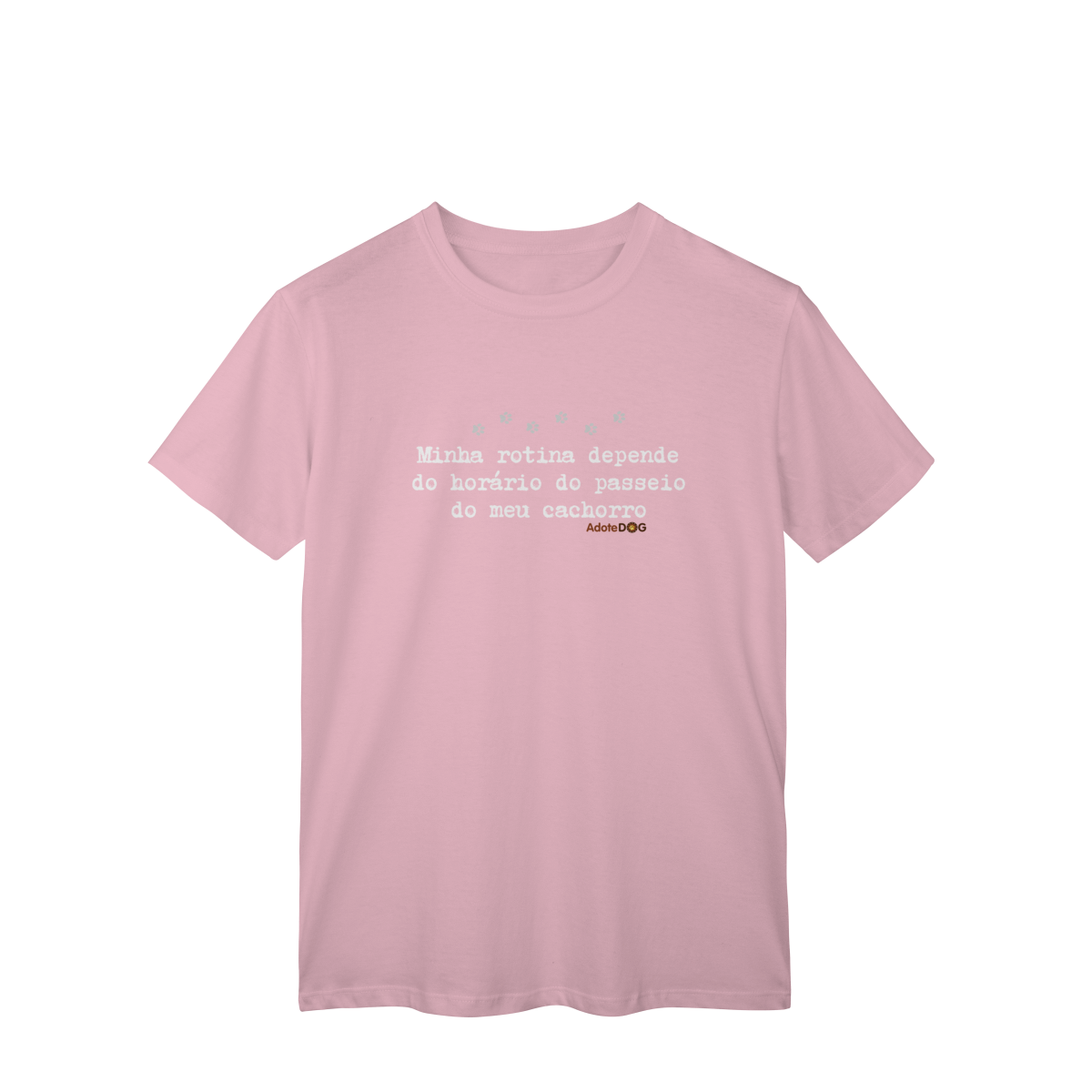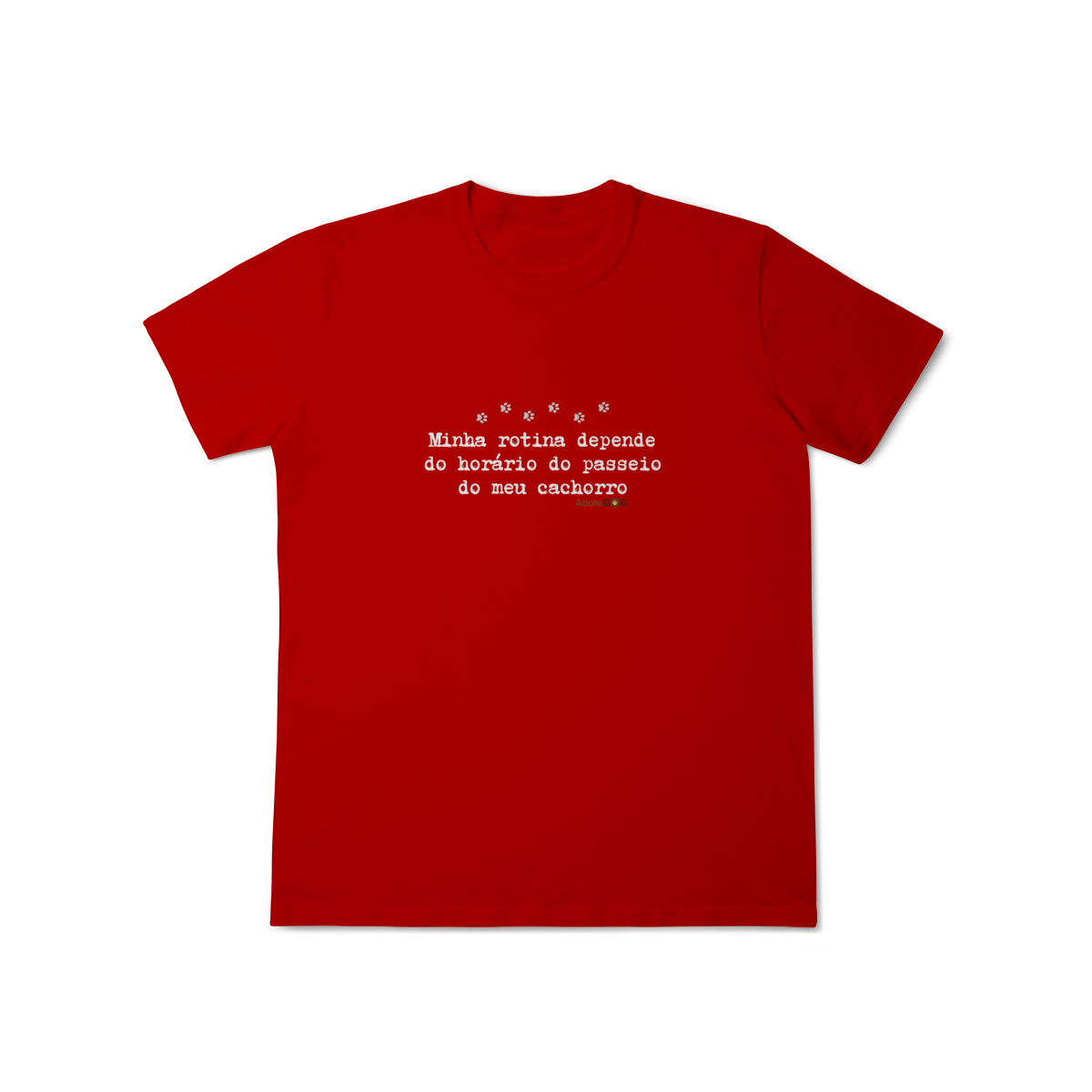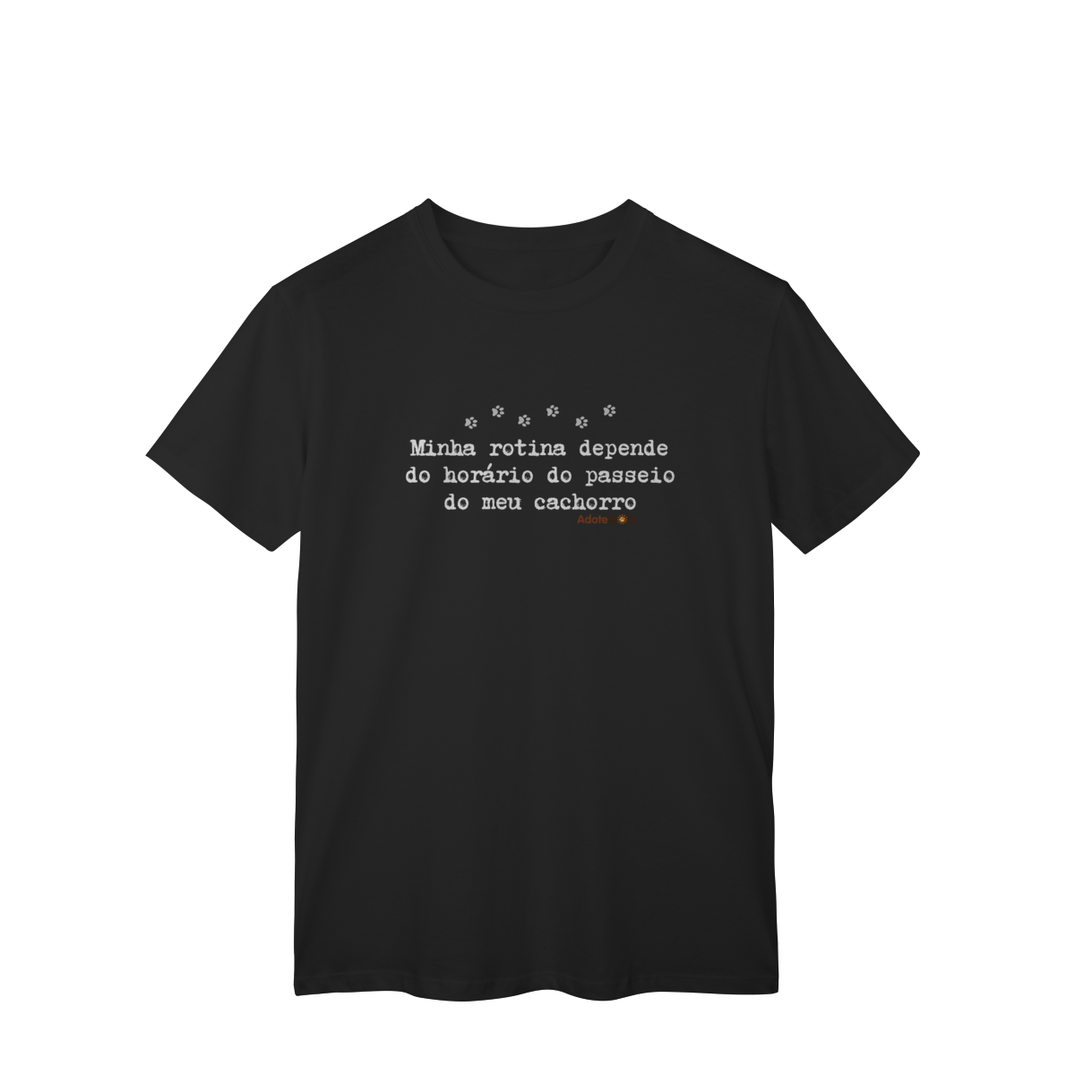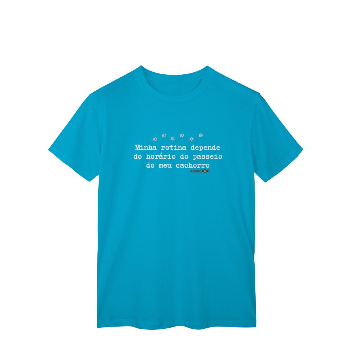 Uma camiseta feita para quem organiza o dia em função de patinhas animadas e passeios obrigatórios. A T-shirt clássica com a frase “Minha rotina depende do horário do passeio.” traz conforto, estilo e uma boa dose de identificação para quem vive a rotina real de quem tem cachorro.