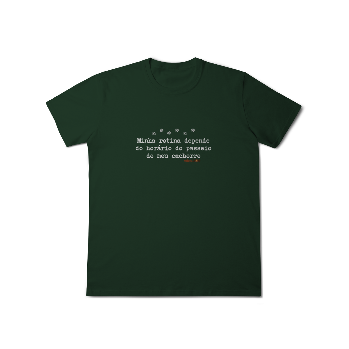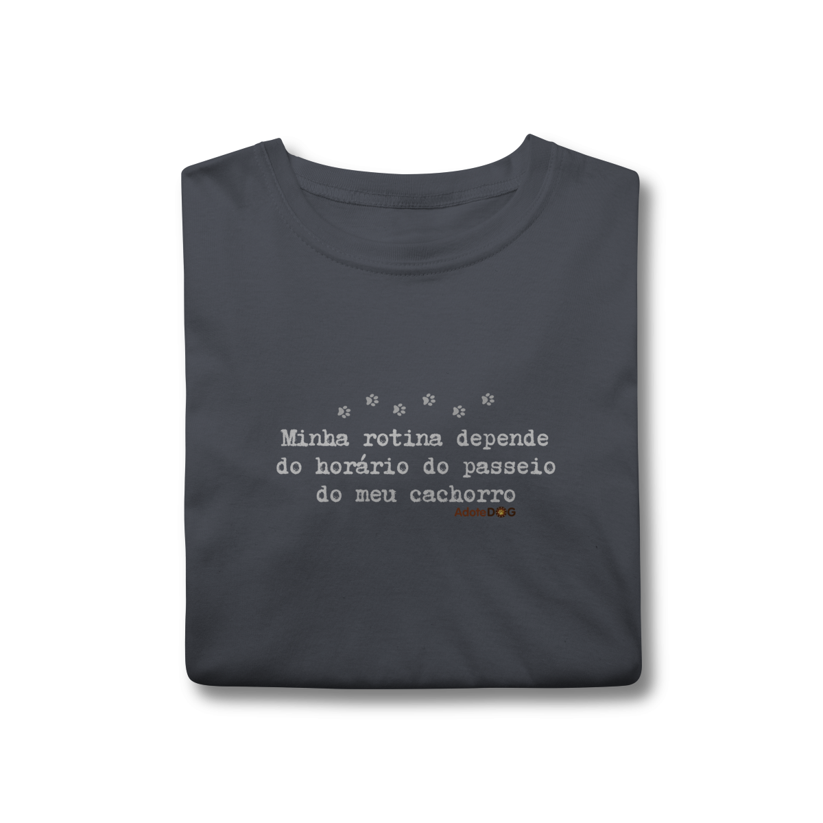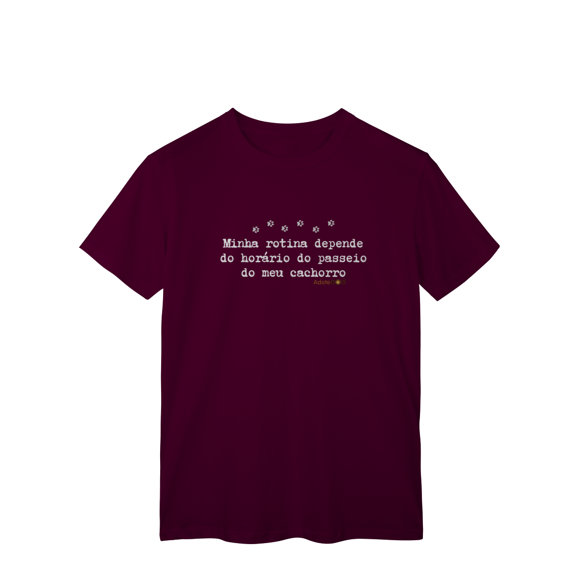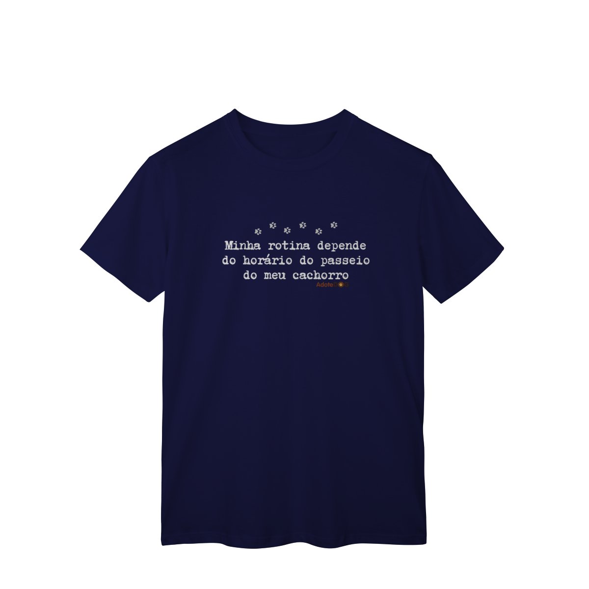 Uma camiseta feita para quem organiza o dia em função de patinhas animadas e passeios obrigatórios. A T-shirt clássica com a frase “Minha rotina depende do horário do passeio.” traz conforto, estilo e uma boa dose de identificação para quem vive a rotina real de quem tem cachorro.