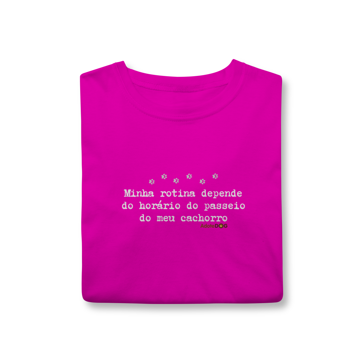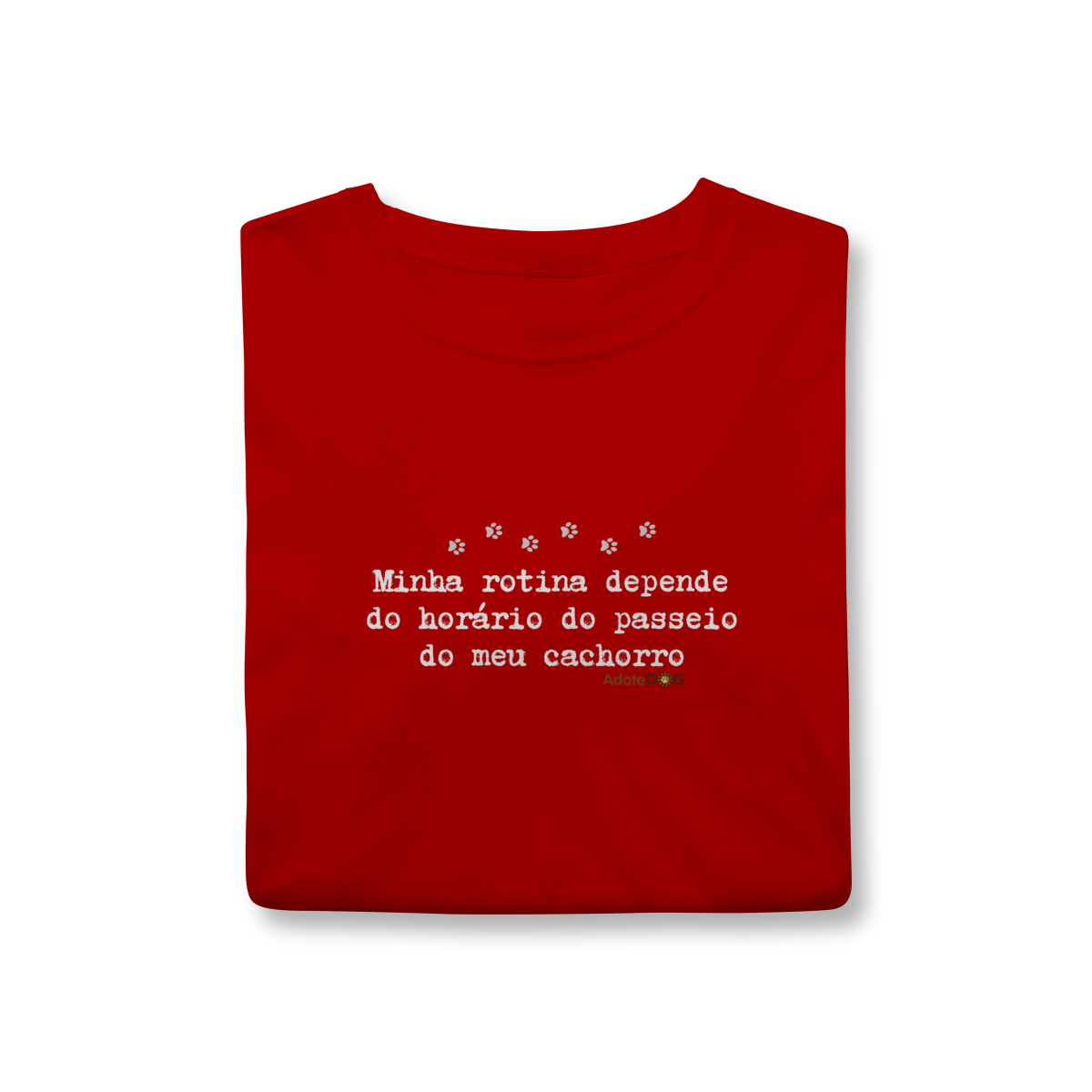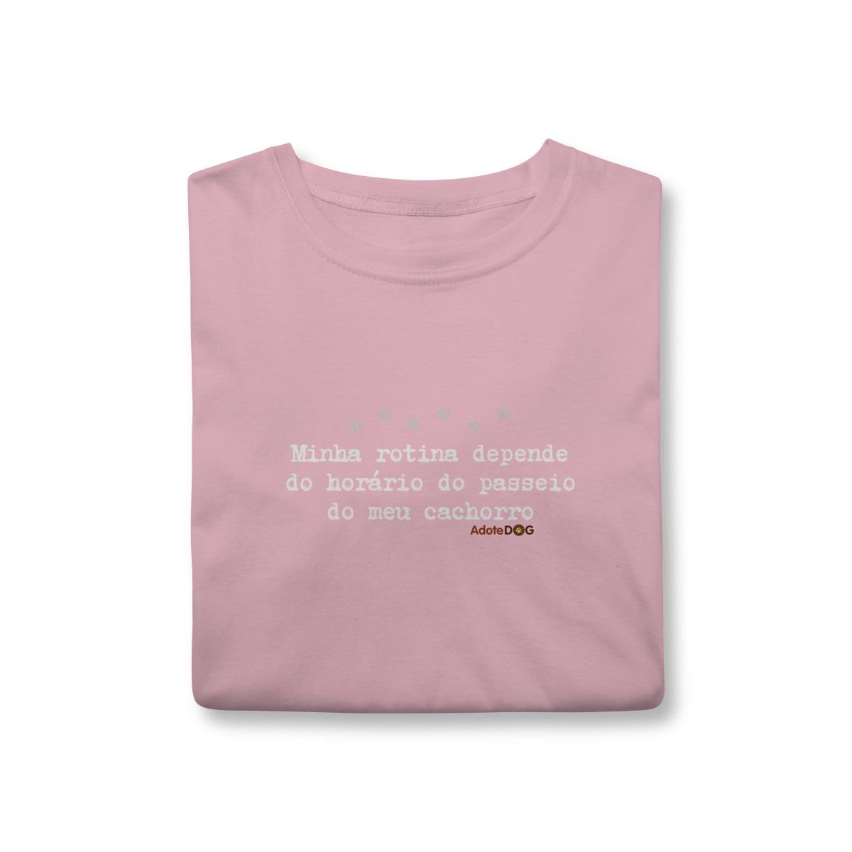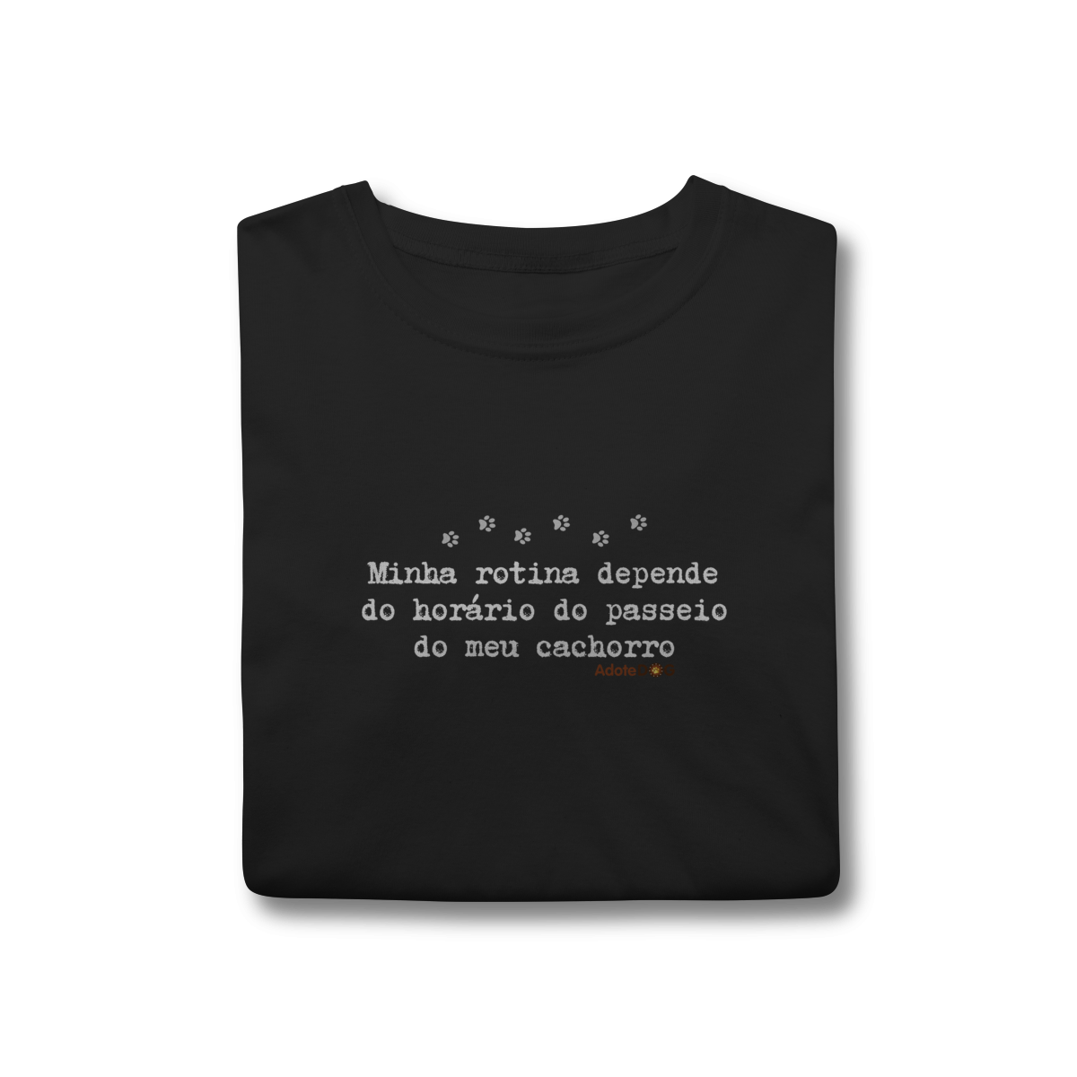 Uma camiseta feita para quem organiza o dia em função de patinhas animadas e passeios obrigatórios. A T-shirt clássica com a frase “Minha rotina depende do horário do passeio.” traz conforto, estilo e uma boa dose de identificação para quem vive a rotina real de quem tem cachorro.